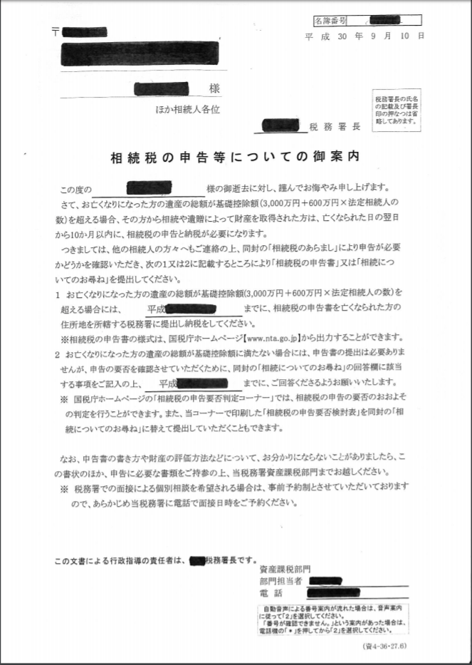 特に、「相続税の申告等についてのご案内」が来た方は早急にご相談ください。