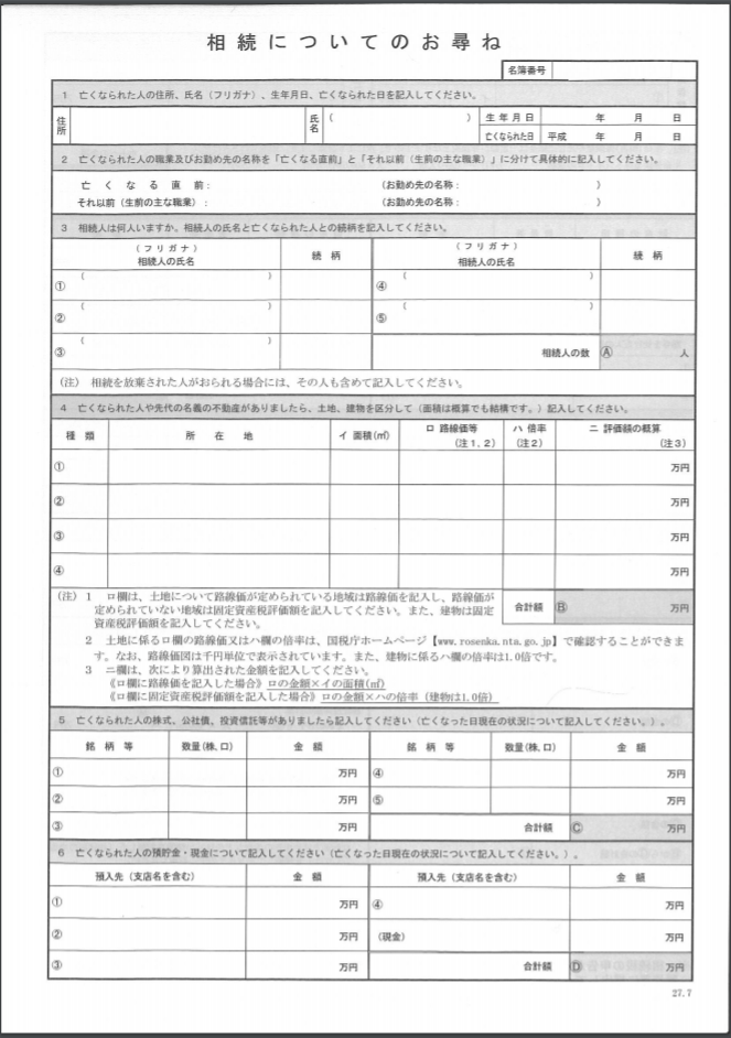 その方に対して、送付される書類がこの「税務署からの相続税についてのお尋ね/お知らせ」になります。