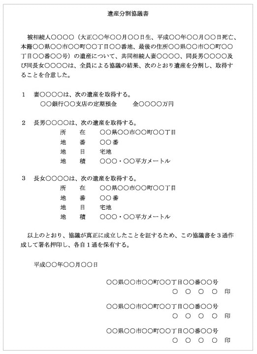 遺産分割協議書には特定の書式やフォーマットは特にありません。